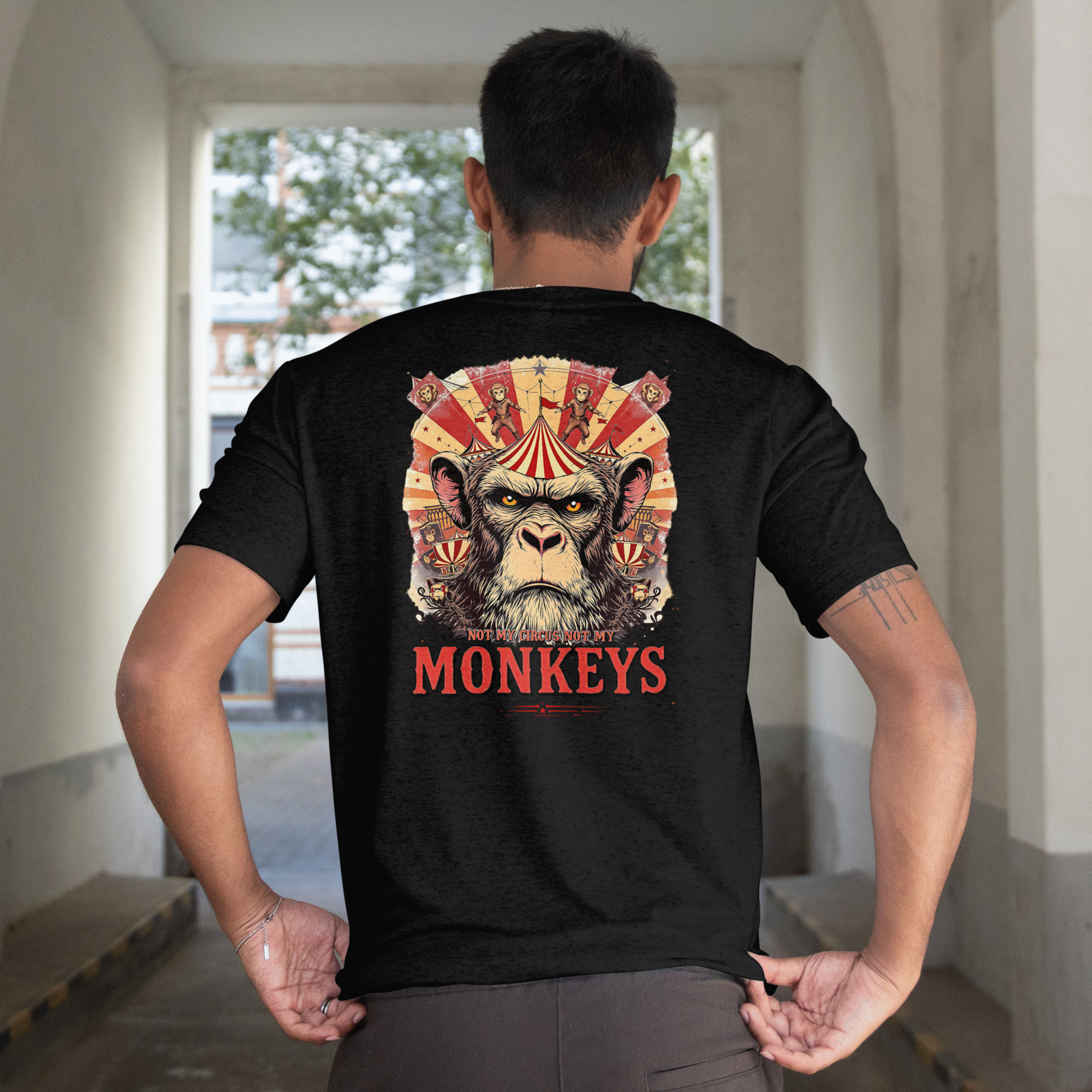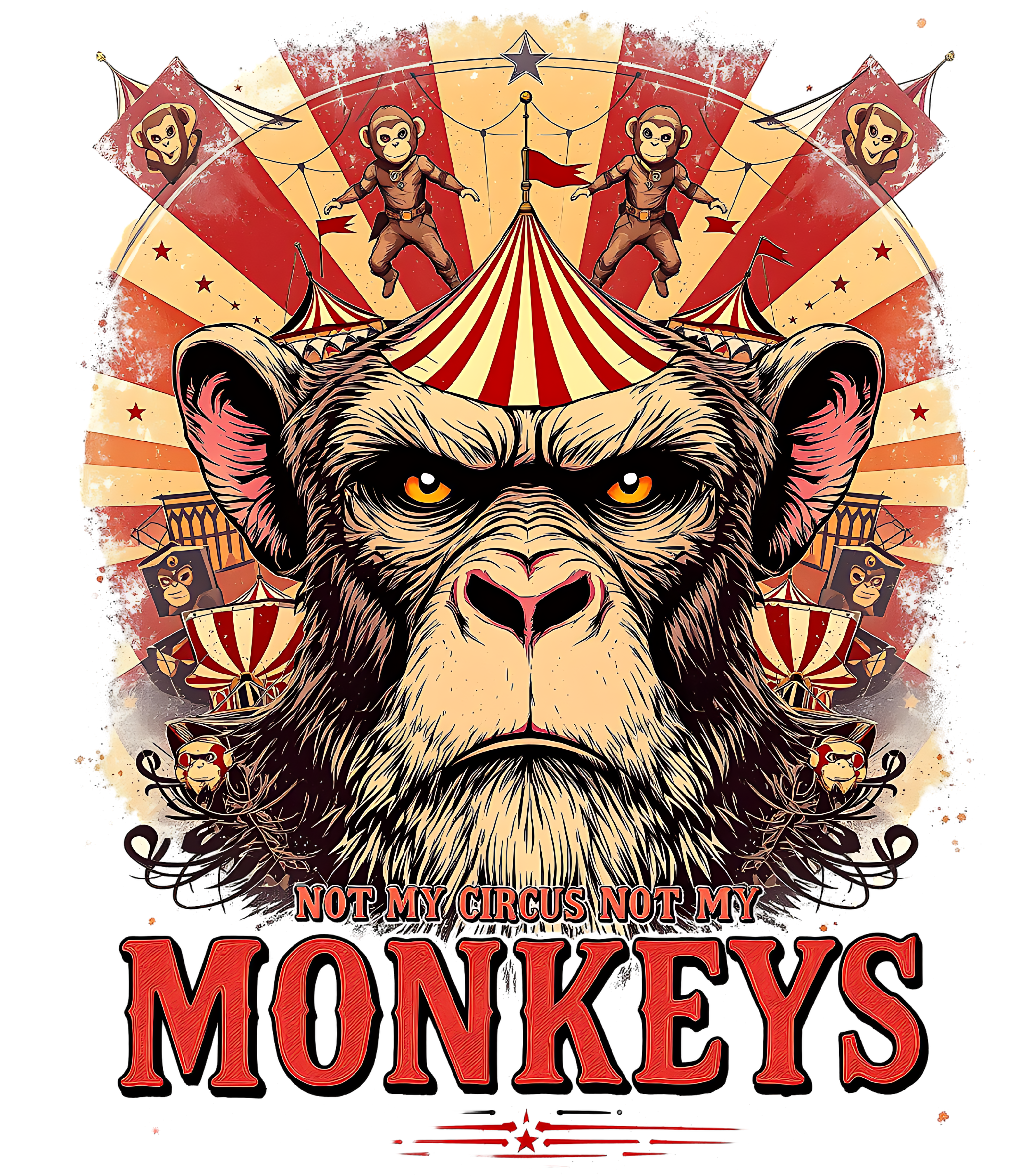 On the back, the phrase “Not My Circus, Not My Monkeys” explodes in a vintage circus-style graphic complete with chaotic monkeys — because drama is for other generations.