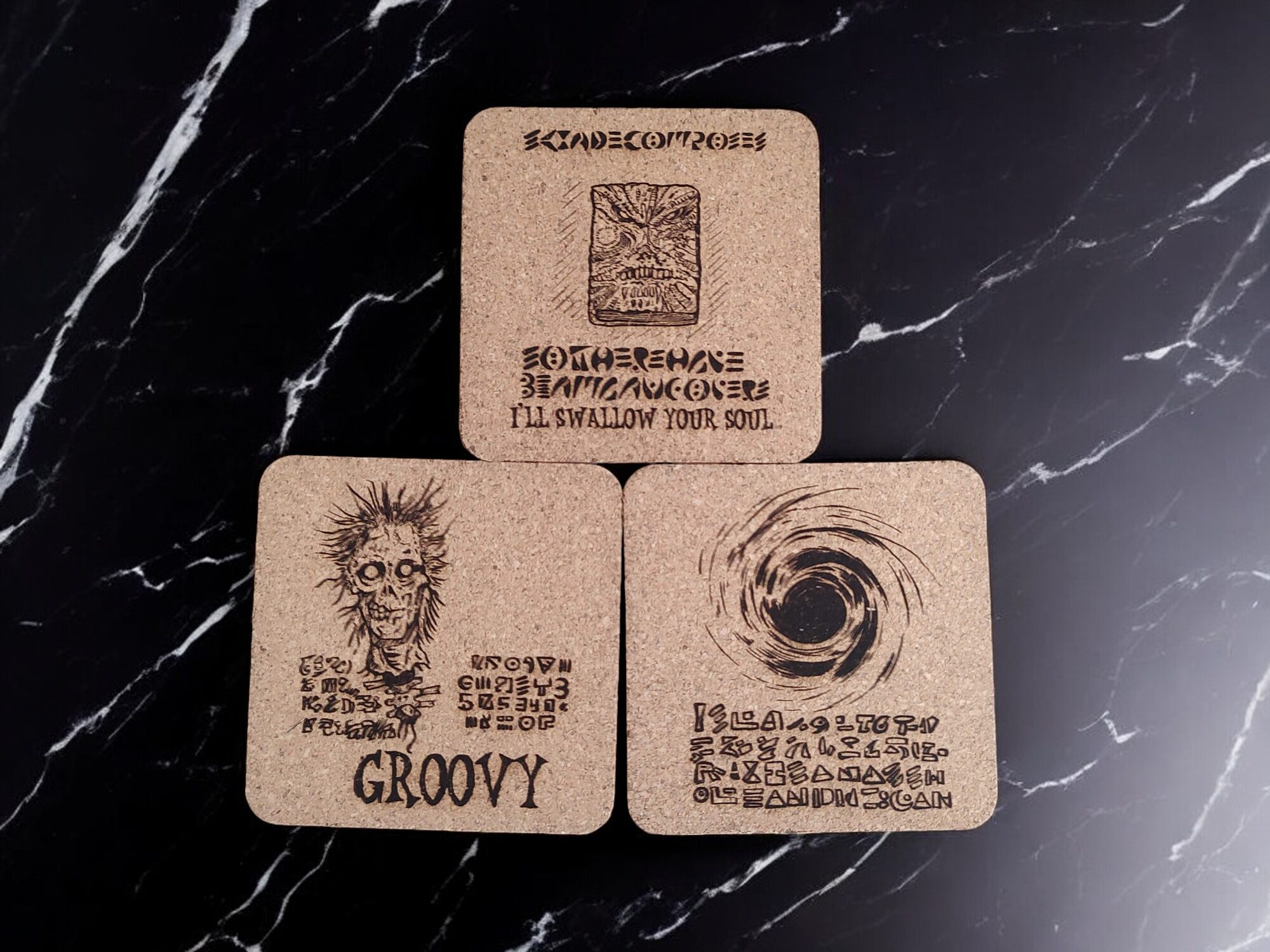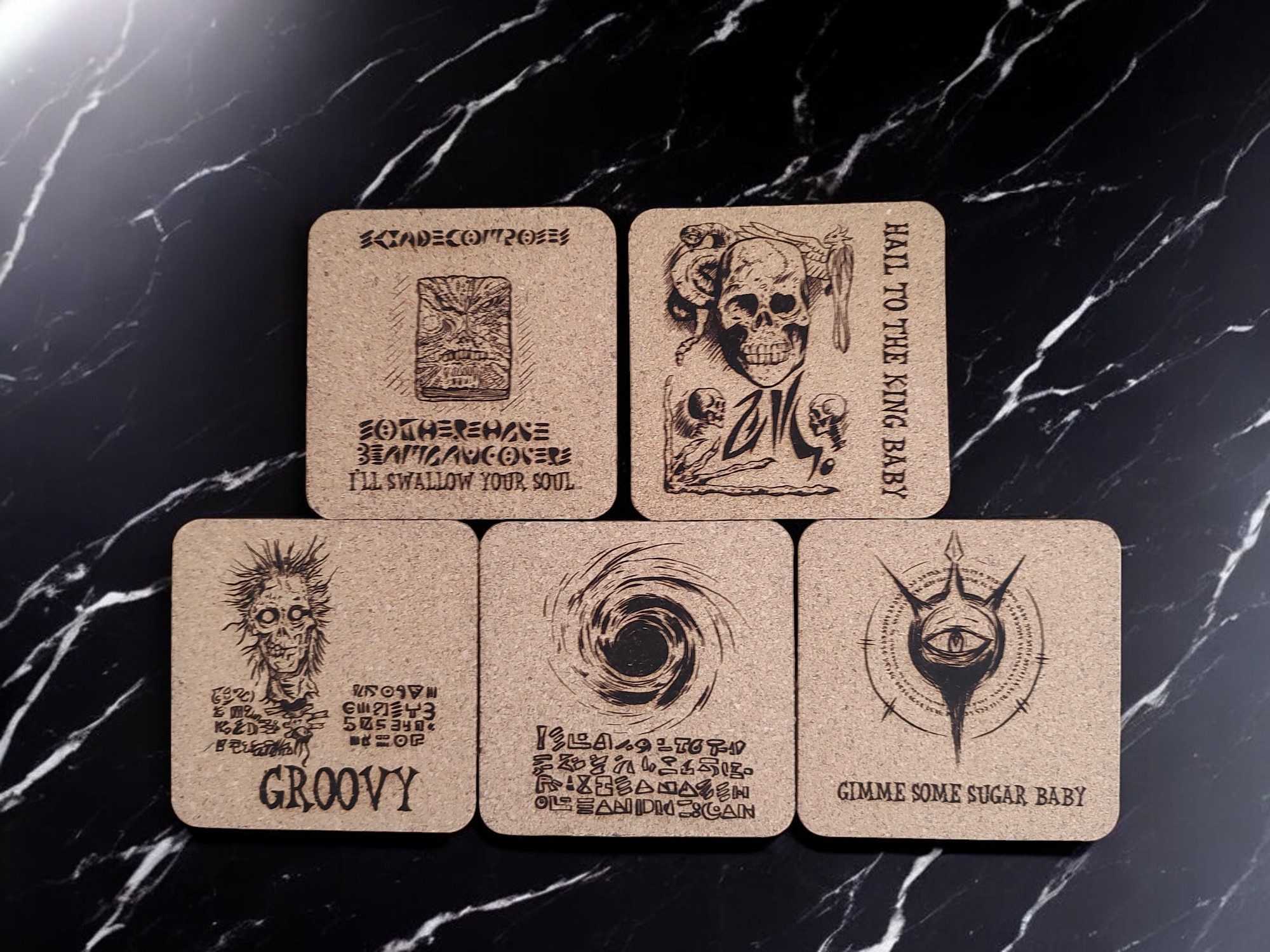 Crafted with a durable cork backing, these coasters not only protect your surfaces from water rings and scratches but also add a chilling touch to your home décor. Whether you’re enjoying a drink during a horror movie marathon or gifting a fellow fan, these coasters are both functional and frightfully fun.